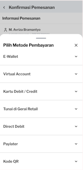 3. Anda masuk ke halaman Konfirmasi Pemesanan, kemudian pilih metode pembayaran yang diinginkan.